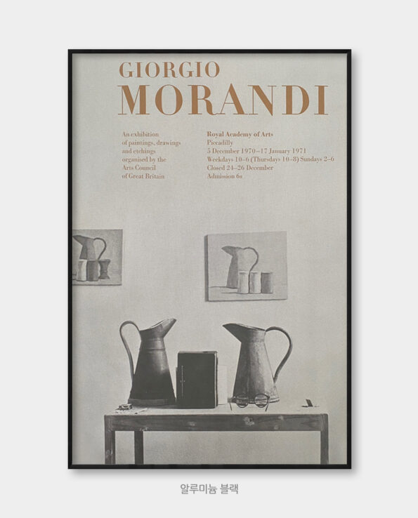 1970년 RA 영국 왕립 예술원에서 열린 조르조 모란디의 전시포스터로, RA의 설립 250주년을 기념하기 위해 재발행한 에디션입니다.